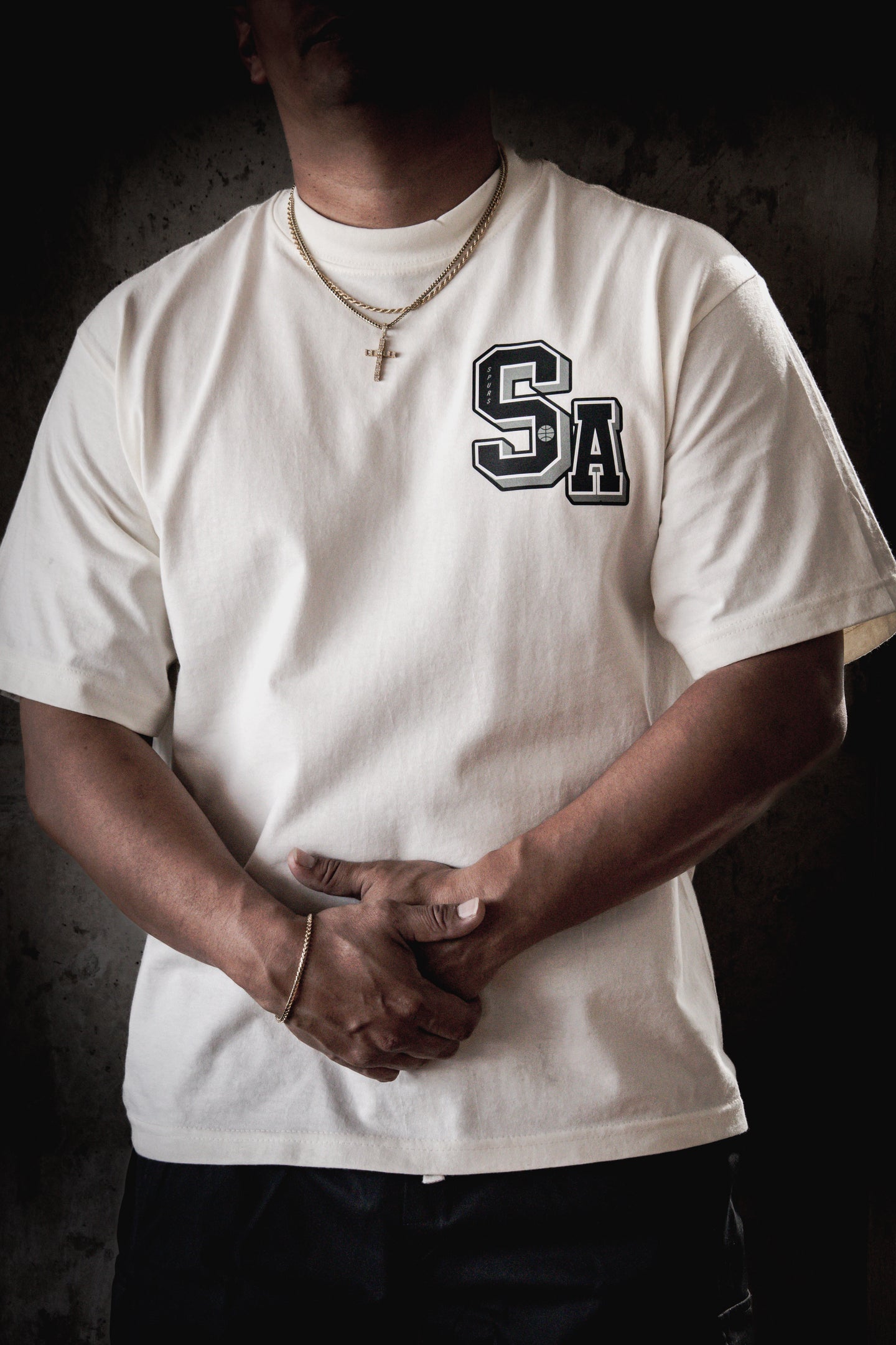 A street twist on a classic look. The Spurs Letterman T-Shirt blends vintage varsity energy with modern streetwear style, giving you a clean, bold piece that stands out on or off the court. Designed for everyday wear with a cropped, boxy silhouette that hits just right.